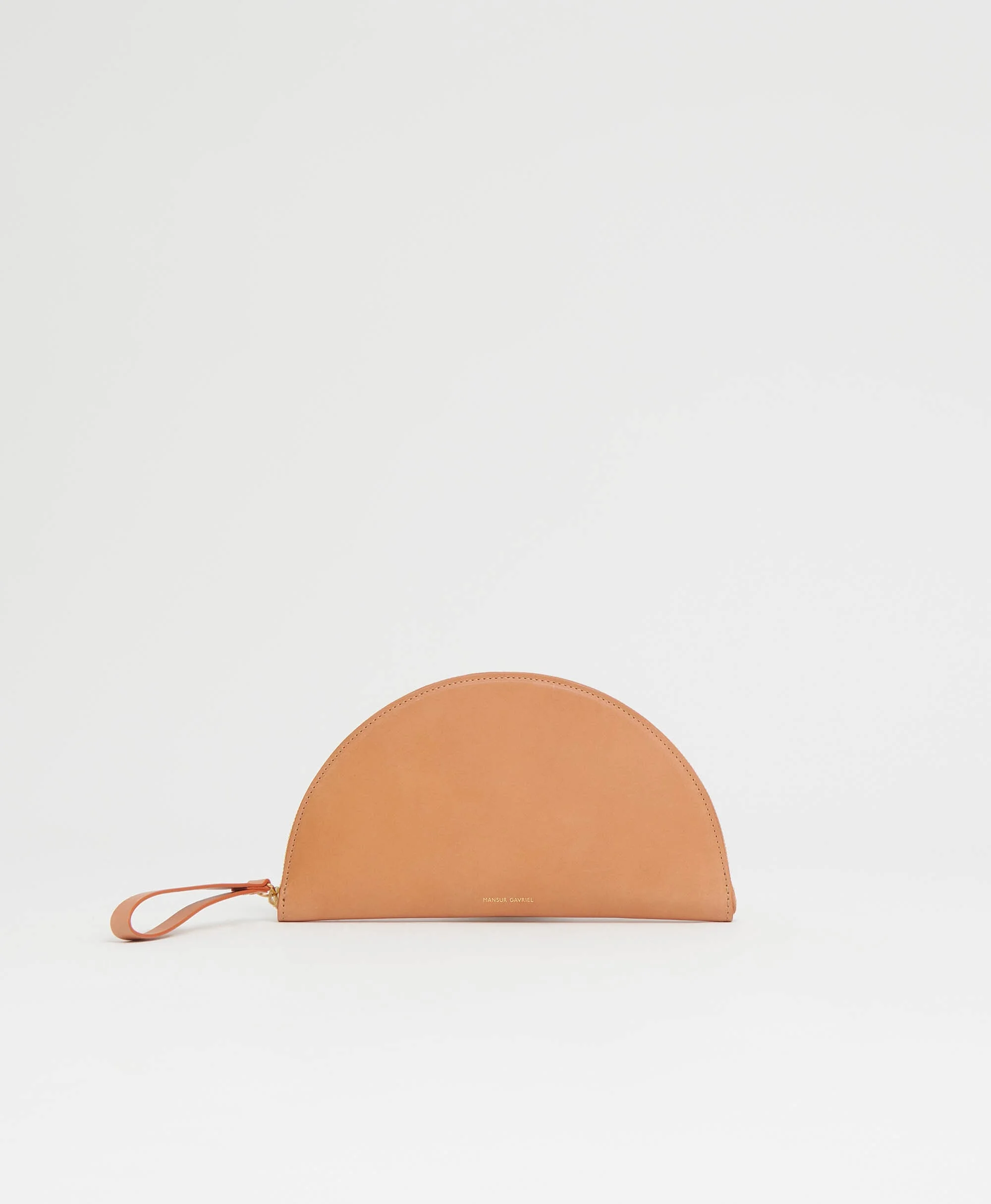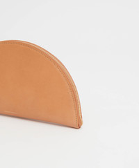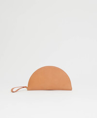 Shaped like a crescent, our Moon Wristlet is crafted from smooth, vegetable tanned Italian leather with a zip pull that doubles as a wrist loop. Its pop of color interior features a slim pocket for cash, credit cards, and the occasional bit of loose change. Details Width: 9 in / 23 cm Height: 5 in / 13 cm Depth: .7 in / 2 cm Composition: 100% Italian Vegetable tan Leather Lining: 100% Italian Lambskin Leather Made in Italy Materials Our Italian Vegetable Tanned Leather is a classic leather that shows its wear beautifully over time. It will not remain pristine and sleek, and although scratching will occur, we do not view these marks as defects. The patina created by daily wear-and-tear is meant to change and evolve over time.
