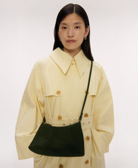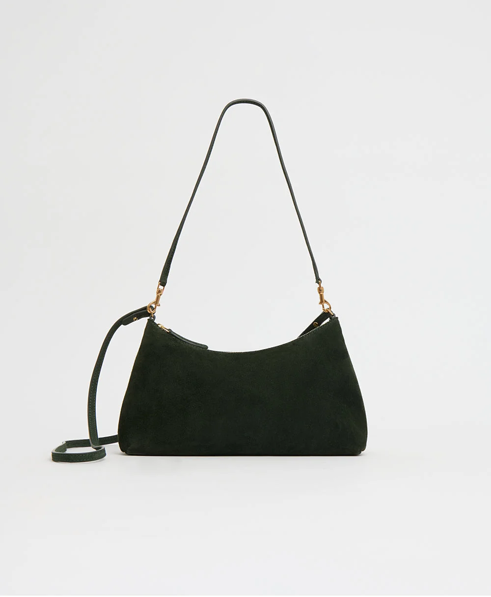 Our new Rhea bag is perfectly soft and slouchy, crafted from Italian Suede. Featuring two adjustable straps with gold hardware accents, wear the Rhea as either a shoulder or crossbody bag. Suited to fit your everyday essentials, can fit an iPhone max. Details Width: 10.2in / 26cm Height: 5in / 13cm Depth: 1.2in 3cm – at the top 3.2in / 8cm – at the bottom Shoulder strap: 12.5in / 32cm Crossbody drop: 20in / 51cm Weight: 9 oz Composition: 100% Italian Calf Suede Made in Italy Materials Our Italian Suede Leather is soft with a velvet-like finish. Darker and vibrantly colored suedes may stain lighter colored materials if placed in close contact. Pre-treat the leather with a suede protectant and avoid exposure to liquids. Occasionally treat the leather with a suede brush to help smooth any marks or indentations.