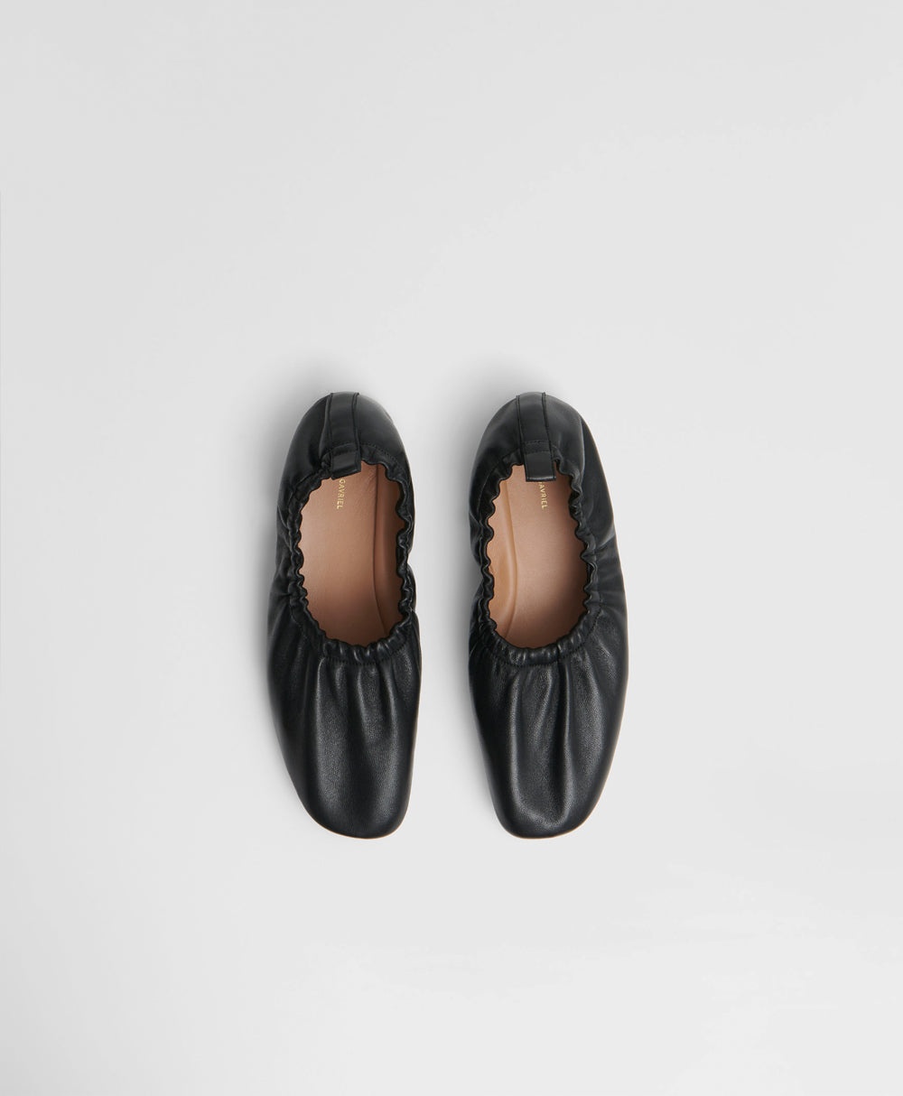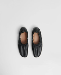 Our newest ballerina flat is crafted from ruched Italian lambskin that molds to your foot with buttery softness. Designed to slip on your feet with ease, the Ruched Ballerina features back pull tabs and a cinched top. Enjoy complimentary size exchanges, valid on U.S. purchases only. Details Heel Height: 0.4in / 1cm Composition: Self/Lining: 100% Italian Lambskin Leather Made in Portugal Sizing Please reference our Size Guide to find your size. Materials Our Italian lambskin is an ultra-smooth, buttery leather. Lambskin is recognized for both its soft texture and longevity. We recommend a leather conditioner for hydration. Avoid exposure to abrasive surfaces and store the item in its dust bag.