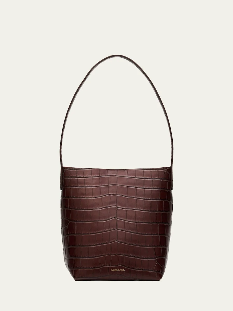 Mansur Gavriel everyday tote bag is crafted in richly textured croc-embossed leather Shoulder straps Open top with magnetic closure Interior, one slip pocket Approx. 9.8"H x 8.2"W x 5"D Spot clean Made in Italy Online Inquiries: BGS21_V6KY5| Store Inquiries: #5033760