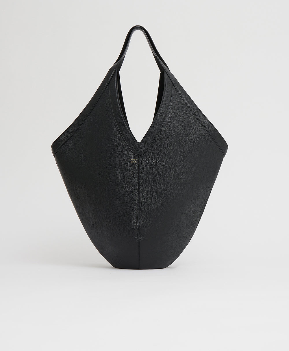 Our suede-lined Italian leather Soft M Hobo bag has an oversized, graphic shape designed to tote all your everyday belongings. For added versatility, four interior ties can be knotted to give the bag more structure or left open for a slouchier silhouette. Details Width at base: 10.24 in / 26 cm Width at Top: 20 in / 51 cm Height : 12.6 in / 32 cm Depth : 0.79 in / 2 cm Handle Drop: 12.2 in / 31 cm Composition: 100% Italian Pebbled Leather Lining: 100% Italian Calf Suede Leather Made in Italy Materials Our Italian Pebbled Calfskin is a textured, soft leather with a supple hand feel. Although recognized for its longevity, it is still prone to occasional scratching if not handled with proper care. We recommend occasionally treating this leather with a leather conditioner, which will help keep it hydrated. Avoid exposure to abrasive surfaces and always taking care to store the item properly in its dust bag when not in use.