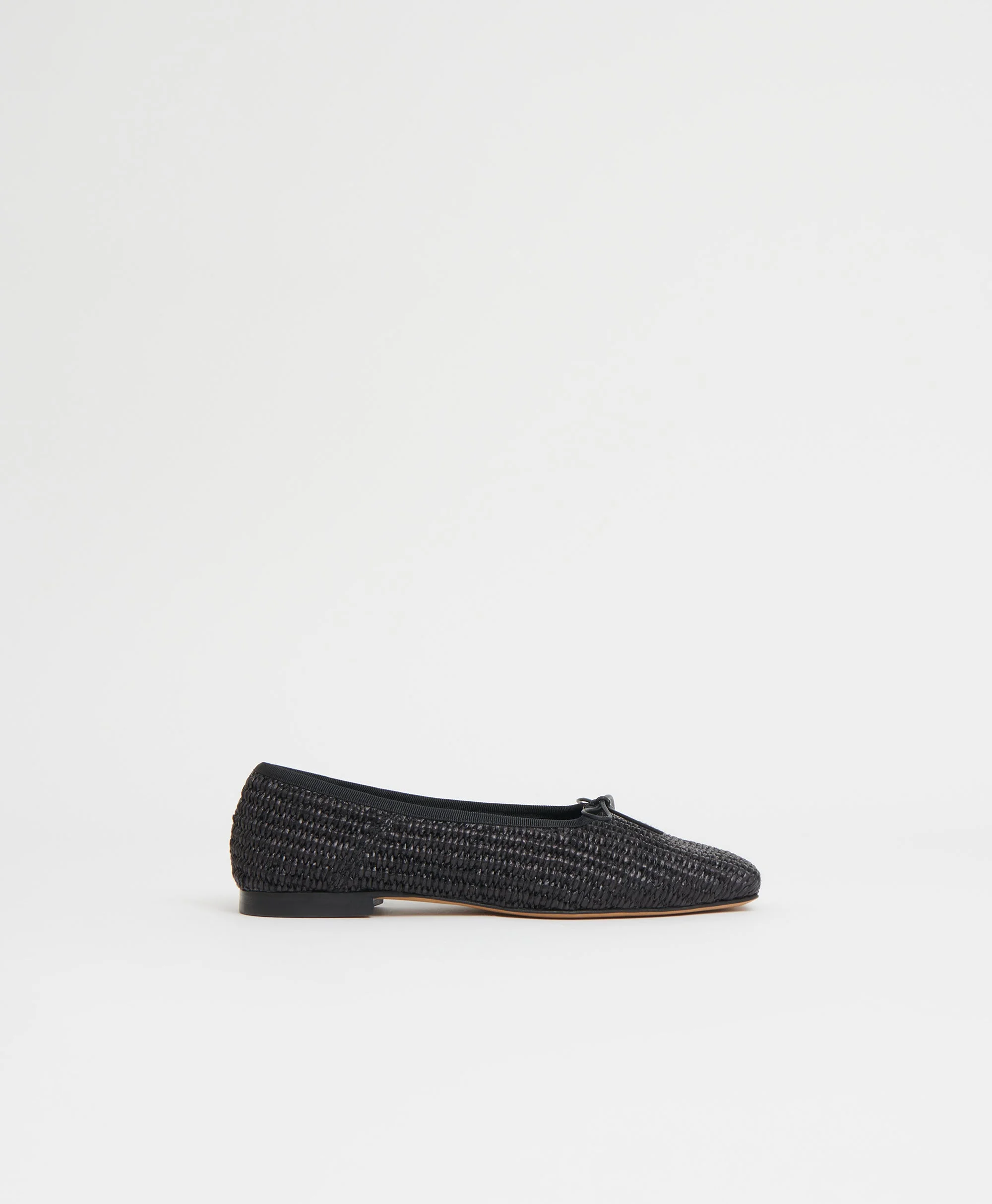 Our Square Toe Ballerina is offered in our naturally soft Raffia. There's something about this special material that exudes the feeling of going on vacation, even if you happen to be commuting to work. Luckily this timeless and comfortable silhouette is perfectly suited for either destination. Details Heel Height: 0.40 in / 10 mm Composition: Raffia: 52% Cotton, 48% Polyamide Lining: 100% Italian Lambskin Leather Made in Portugal Sizing Please reference our Size Guide to find your size. Materials Our Raffia fabrication is woven in Tuscany in a century old mill. Made from a blend of polyamide and cotton, our Raffia is naturally soft and durable. Avoid abrasive surfaces and spot clean with a damp cloth.