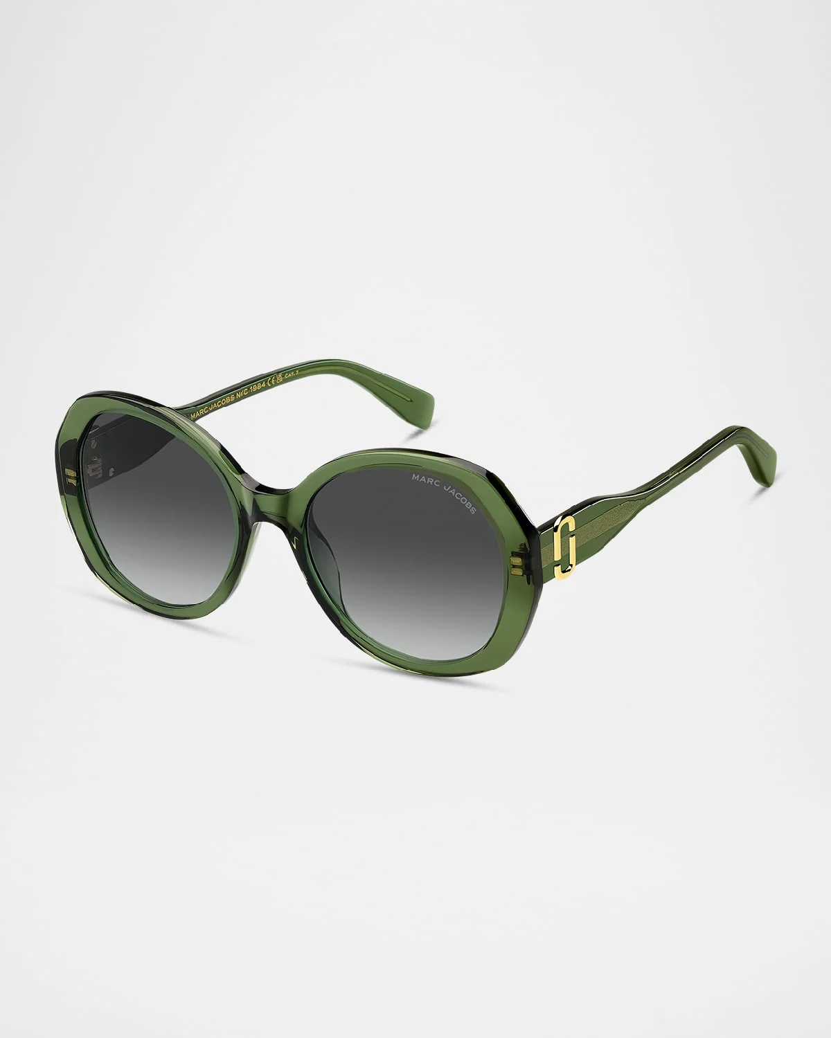 - Marc Jacobs oval sunglasses in acetate - Lens/bridge/temple (in mm): 55-20-145 - Gradient lenses - Logo on left lens and temples - Saddle nose bridge - Wide, tapered arms - Wipe clean - 100% UVA/UVB protection - Imported - Proposition 65 warning for California residents