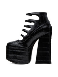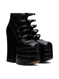 Croc-embossed leather heels in black. · Pin-buckle straps at vamp · Buffed leather lining · Covered block heel with rubber injection · Covered platform midsole · Leather sole · Platform: H3" · Heel: H6" Supplier color: Black