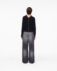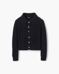 Description Luxuriously crafted in an ultra-soft wool cashmere blend, this cable knit cardigan can be worn both front-to back or back-to-front for versatile and sophisticated styling. With a shrunken yet relaxed fit, this collared silhouette features snap-button closures in mismatched charms and gems for an iconic and playful touch. 2S5RTP005K04 Features 90% Wool, 10% Cashmere Logo embroidery on side body Mis-matched charms, mini icons, and gems Button snap closure All-over textural transfer cable stitching Reversible Fit Sizing Can be worn 2 ways, Fits true to size Taken from size S bust 37.5"length 19.8"sleeve length 29.0"