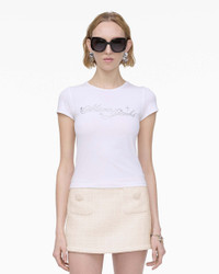 Description A Runway-to-Reality takedown crafted in lightweight stretch jersey, the Charm Logo Shrunken Tee has a sleek feminine fit and a reimagined crystal-embellished cursive logo for everyday high-style dressing. 2S5RTP025C07 Features 100% Cotton Runway inspired hotfix crystal logo at front Double needle stitch on neck and sleeve cuff Sizing Fits true to size, feminine fit. Men may want to size u. Taken from size S bust 28.7"length 21.7"sleeve length 5.3"