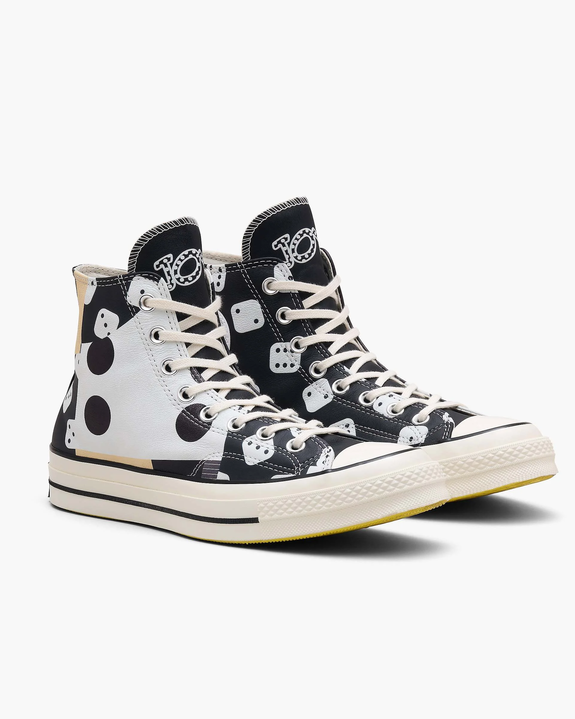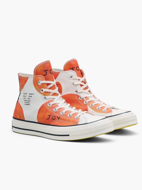 Description Step into a limited-edition artist collaboration like no other: The Converse Chuck 70, reimagined with bold artwork - a Marc Jacobs exclusive. Each design is individually numbered, with only a limited batch of each style made (so once they’re gone, they’re gone!). Finished with Converse x Marc Jacobs co-branding on the back heel and the iconic Chuck patch, these high-tops are built to stand out wherever you go. No rules, no wrong moves - just your style, your way. 2F5FSN001F75 Features Leather Upper Rubber Sole Cotton Footbed 1.4" (36mm) Cupsole