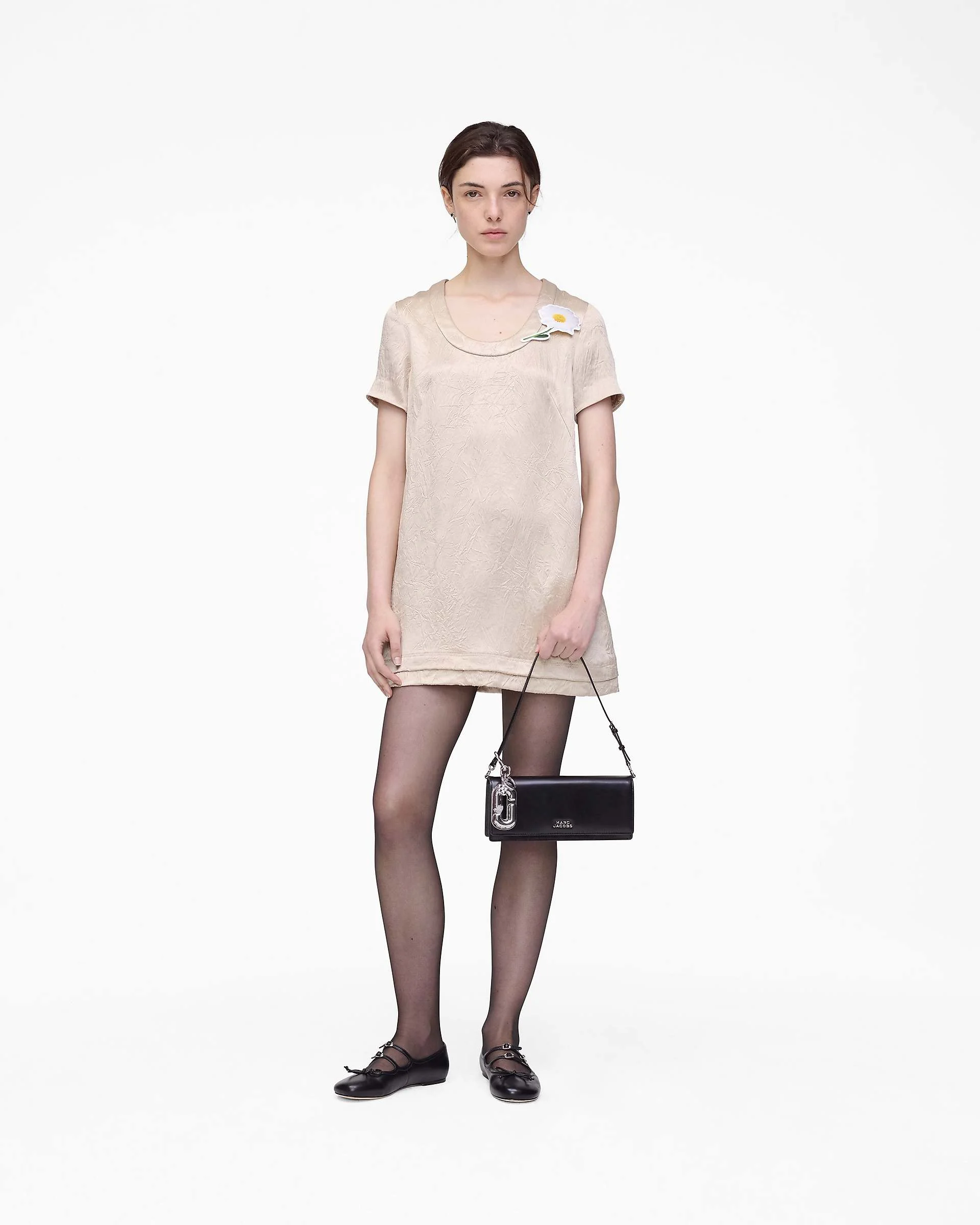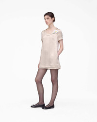 Description Crafted in soft crushed satin, this mini dress offers subtle texture with effortless elegance. It features a rounded scoop neckline and double-hem detailing for a refined finish. Complete with a removable runway-inspired daisy brooch, it’s a casually chic silhouette elevated with playful charm. 2F5RDR088W09 Features 100% Acetate Sizing Standard fit. Fits true to size. Designed to have a more relaxed fit. Model is wearing size 2 Height: 5'10" 1/2 Bust: 31.5" Waist: 23" Hips: 34"