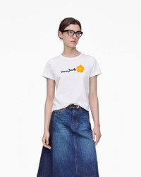 Description A fresh take on a signature staple, the Daisy Logo Slim Tee blends runway charm with everyday wearability. Crafted from lightweight stretch jersey, it features a daisy motif inspired by runway, and an embroidered Marc Jacobs logo at the chest. A rubberized logo at the back neck adds a modern, branded finish. 2F5RTP081C12 Features 100% Cotton Sizing Standard fit. Fits true to size. Men may want to size up. Model is wearing size Small Height: 5'10" 1/2 Bust: 31.5" Waist: 23" Hips: 34"
