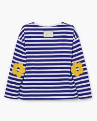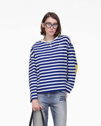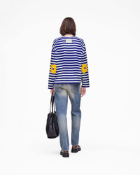 Description Playful yet polished, the Daisy Striped Longsleeve brings a touch of whimsy to classic stripes. Featuring drop shoulders and embroidered daisy elbow patches in cotton toile, it blends comfort with unexpected detail. “JOY” and “MARC JACOBS” are embroidered at the chest, while an artisanal label at the back neck adds a distinctive, seasonal touch. 2F5RTP096C35 Features 100% Cotton Sizing Oversized fit. Size down for closer fit. Model is weaing size Small Height: 5'11" Bust: 31" Waist: 24" Hips: 34"