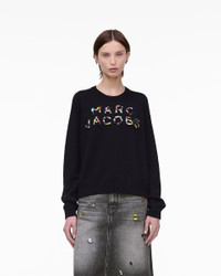 Description Artfully crafted using over 100 hand-applied crystals, this elevated everyday essential features a prominent multi-colored crystal iteration of our classic logo branding. A high-comfort silhouette in 100% wool, this runway-inspired sweater has a relaxed fit for effortlessly chic wearability. 2S5RTP001K26 Features 100% Wool Marc Jacobs gem embellished logo at front Flag label at side 129 handsewn gemstones Sizing Fits true to size Taken from size S bust 39.0"length 21"sleeve length 31.0"