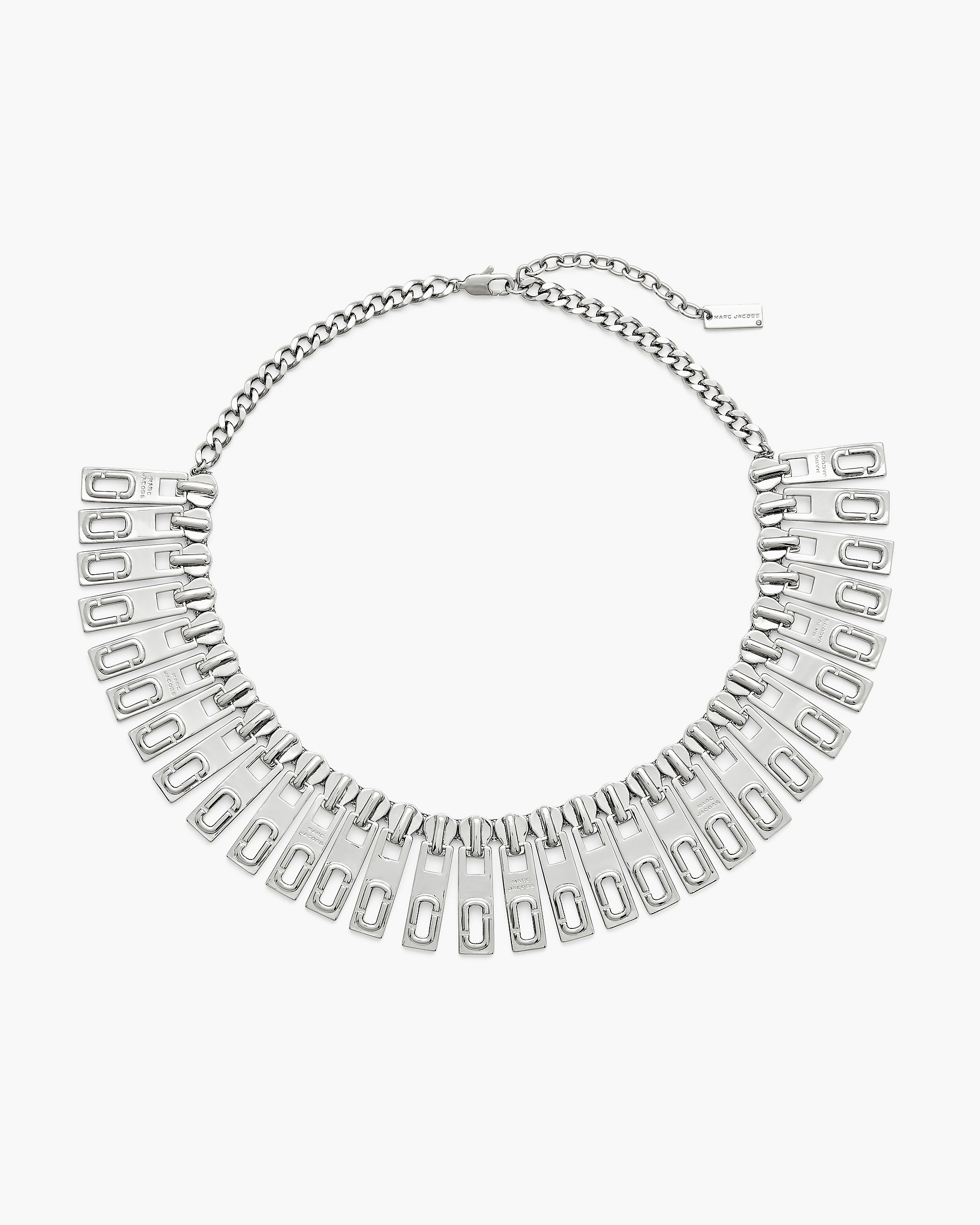 Description A show-stopping statement necklace celebrating Marc’s love of trims. Designed to underscore the luxury of everyday items, this artful chain necklace is abundantly adorned with chunky zipper-pulls, each featuring delicately engraved Marc Jacobs branding and our signature J Marc seal for contemporary high-style accessorizing. 2R4JNC001J19 Features Silver-Plated Brass 100% Nickel Free Lobster Clasp With Extender Chain Shipped In Our Signature Yellow Gift Box With Custom Monogram Dust Bag Dimensions Shorter Length: 41cm Longer Length: 46cm Zippers: 31mm x 8mm