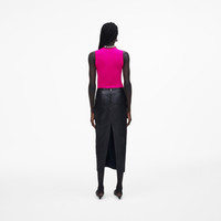A sleek alternative to the classic pencil skirt, this slim skirt is crafted in supple lambskin leather. Style with the matching Leather Bomber for a runway-inspired look. 2S4RSK003W03 FEATURES 100% Lamb Leather Barcode metal plaque Back zipper