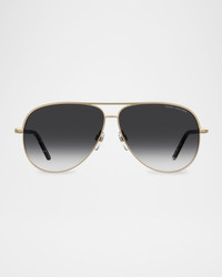 - Marc Jacobs "Marc 765S" aviator sunglasses in metal - Lens/bridge/temple (in mm): 61-10-145 - Gradient lenses; logo on corner - Double nose bridge - Adjustable nose pads - Logo-embossed temples - Thin, tapered arms - Metal - Wipe clean - 100% UVA/UVB protection - Imported - Proposition 65 warning for California residents