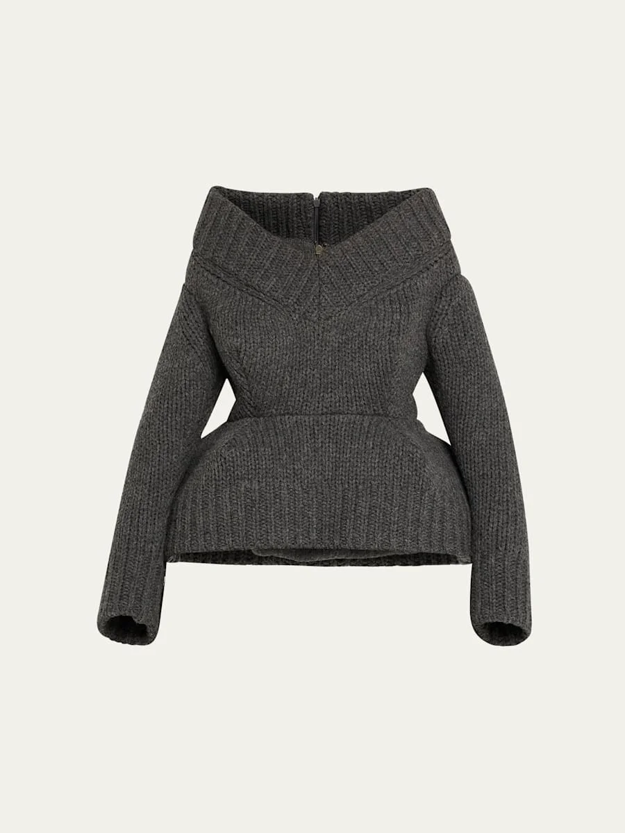 Padded V-Neck Peplum Sweater