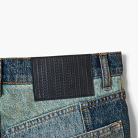 A runway to reality moment. The classic denim mini skirt is designed with five different denim patches. Style with the matching Patchwork Denim Shirt to complete the look. 2S4RSK010D04 FEATURES 100% Cotton Leather barcode patch Logo shank buttons and rivets Side closure