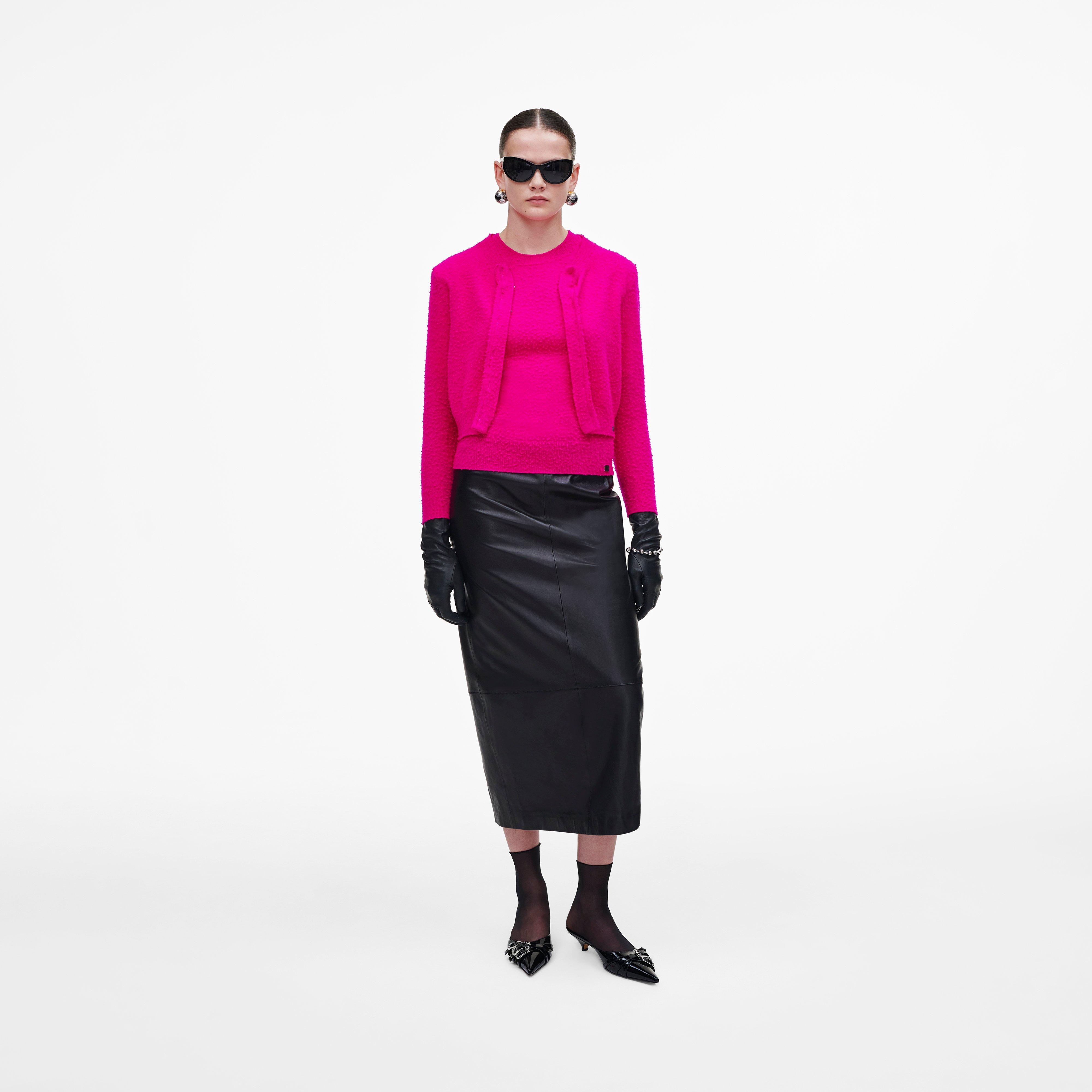 Inspired by the knitwear on the runway, this Italian-made wool cardigan is designed for a shrunken fit and seals with a hidden hook-and-eye closure. 2S4RTP016K13 FEATURES 100% Merino Wool Barcode metal plaque Hook and Eye metal hardware