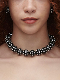 Polka Dot Statement necklace Highlights - Black - Crystal embellishment - Circular design - Choker chain Imported