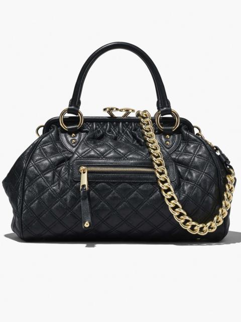 First seen on the Fall/Winter 2005 runway, the Stam quickly became one of the most popular bags during the early 2000s. Now making an iconic return, the Stam is back as a true re-edition to original. Made by Italian artisans, it includes identical features to the original including a removable chain shoulder strap, a luxe lamb leather exterior, the famous kiss lock closure at top, and an allover oversized quilted design. It also includes an exterior zipper pocket and one interior zipper pocket for extra organization. 2S3HSC002H03 FEATURES Lamb leather Metal frame with kiss lock closure Removable shoulder chain strap 1 exterior zipper pocket, 1 interior zipper pocket Faille lining Dust bag included DIMENSIONS 14in L x 5in D x 10in H 36cm L 13x cm D x 25cm H Strap 34in L x 1in D (86cm L x 3cm D) Handle Drop 5in (13cm)