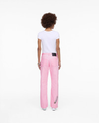 Description A mid-rise straight cut jean crafted in premium dyed denim, this playfully sophisticated silhouette is thoughtfully adorned with runway-inspired placed prints celebrating iconic archival Marc Jacobs charms. Featuring signature back-pocket “M” stitching, a button-fly closure, 5 pockets for optimized functionality and a relaxed fit, pair this silhouette with the Runway Charm Shirt for a perfectly coordinated set. 2S5RBT001D09 Features 100% Cotton "M" stitching at back pocket, custom logo tack buttons and rivets Tack buttons, rivets Button fly Mid rise, relaxed, straight cut leg, Ddaisy patch at back pocket with hot fix crystal border, custom placed archival charm motifs Sizing Mid Rise. Fits true to size Taken from size 26 Waist 29.9" Hip 38.2" Inseam 31.0"