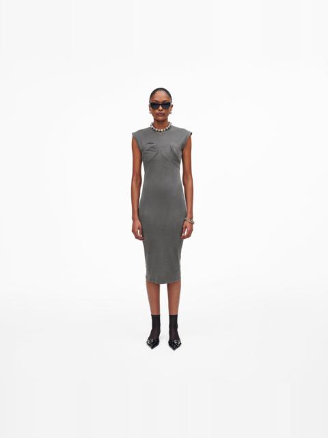A runway to reality moment. This midi dress is designed with seamed appliques at the chest as seen on the Fall '23 Runway. 2S4RDR010C26 FEATURES 100% Cotton Tonal distressed barcode logo printed on upper back