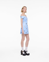 Description A showstopping sequin-embellished silhouette inspired by the soft vibrancy of spring. Celebrating our seasonal textural sequin daisy motif with sparkling crystal detailing, this mini-length silhouette features a sculpted off-the-shoulder neckline, a matte satin fabrication, on-seam pockets and an invisible-zipper back closure. Internally constructed with a runway-derived mesh corset and boning, embrace quintessential Marc Jacobs styling with this versatile piece. 2S5RDR075W01 Features 100% Polyester Zipper closure Invisible zipper at centerback Runway inspired sculpted off the shoulder neckline, machine applied sequin daisies, hand applied hot fix crystal at center of flower, on seam pockets Sizing Fits true to size. Meant to be slightly fitted Taken from size 4 bust 32.5" length 23.5" sleeve length 3.6" waist 28.5"