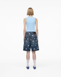 Description Designed with Runway-inspired masculine proportions and femininely contrasting textural sequin daisy embellishments, The Sequin Daisy Wide Leg Short features refined frayed edges, 5 pockets for optimized functionality, a button-fly closure with custom logo tack buttons and a relaxed A-Line fit. Crafted in vintage-inspired mid-wash indigo denim, pair with the Sequin Daisy Jacket for an iconic set. 2S5RBT047D08 Features 100% Cotton Custom logo tack buttons and rivets, patent leather barcode patch at back waistband Tack buttons, rivets Button fly Embroidered sequin daisies, 5 pockets, slightly A-line pant leg Sizing Relaxed fit. Designed to sit at the low waist Taken from size 26 waist 31.3" hip 39.6" inseam 9.0"