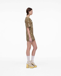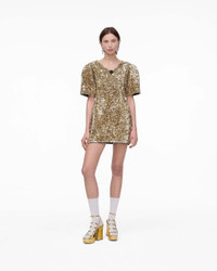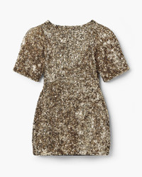 Description Featuring all over textural gold sequins and a pave-embellished removable puffed daisy brooch, The Sequin V-Neck dress is the perfect blend of classic elegance and contemporary design. Using a meticulous sequin application technique for a luxurious 3-D effect, this doll-inspired silhouette features exaggerated sleeves, removable shoulder pads, a cinched-in waist and a high-comfort stretch fabrication for effortless wearability. 2S5RDR001K14 Features 80% Viscose, 20% Nylon Silk-like stretch lining at sleeve Removeable pave daisy pin Rxaggerated sleeves, all over gold sequins Sizing Fits true to size. Meant to be slightly fitted to exentuate wais Taken from size S bust 30.5"length 31.5"sleeve length 12.5"waist 27.0"