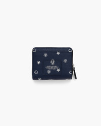 Description This compact wallet brings everyday utility to life with a playful bandana-inspired print, layered with hidden Marc Jacobs charms for extra personality. Crafted in textural pebble leather and finished with debossed namesake branding, it features a bill sleeve, four card slots, two interior slip pockets, a double-gusset coin pouch and two external pockets - all secured with a sleek snap closure. 2R5SMP003S01 Features Pebble Leather Snap Closure 4 Card Slots, 1 Bill Sleeve, 2 Interior Slip Pockets, 1 Coin Pouch With Double Gusset, 2 External Slip Pocket Twill Lining Dustbag Included Dimensions 4in L x 1in D x 4in H 11cm L x 3cm D x 9cm H