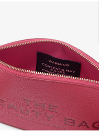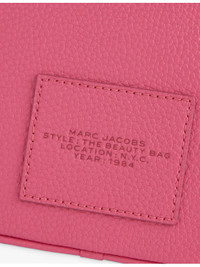 PRODUCT DETAILS - Marc Jacobs leather pouch - 100% calf leather - Zip fastening - Detachable wristlet, debossed text and branding at front, brand patch at back, all-over grained leather, silver-toned hardware, one main compartment, internal patch, fully lined - Height 13.5cm, width 22.5cm, depth 7.5cm - Specialist leather clean - Comes with a dust bag Ref: R04506583