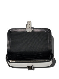 The Bi-Color J Marc mini bag Spinning the classic J Marc shoulder bag, Marc Jacobs presents an updated Bi-Color version. Boasting the ever-present homonymous hardware, it includes swappable straps that allow to wear it in three different ways. Highlights - White/black - Leather - Logo plaque - Detachable chain-link shoulder strap - Adjustable detachable shoulder strap - Foldover top - Main compartment - Internal zip-fastening pocket - Internal card slots - Slip pocket to the rear Imported Composition Coating: Polyurethane 100% Outer: Leather 100% SIZE & FIT Measurement DEPTH 1.18 in(3 cm) HANDLE 9.44 in(24 cm) HEIGHT 3.93 in(10 cm) STRAP 27.55 in(70 cm) WIDTH 7.48 in(19 cm)