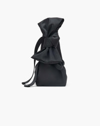 Description A bold update to our Mini Sack, this style features an oversized bow for an everyday statement. Crafted in pleated nylon, it offers versatile carry options with an overstated top handle and adjustable leather crossbody strap. Secured with a magnetic closure, the interior features a D-ring and a clip-in leather pouch to keep your essentials effortlessly organized. The bag is finished with embroidered tonal namesake branding- adding a signature touch. 2P5HSC004H03 Features Nylon Magnetic Closure Top Handle, Removable And Adjustable Leather Strap 1 Removable Zip Pouch Dust Bag Included Dimensions 9in L x 4in D x 5in H 22cm L x 11cm D x 14cm H Strap 47in L x 0.31in D (119cm L x 0.8cm D) Strap Drop 22in 57cm Handle Drop 4in (11cm)