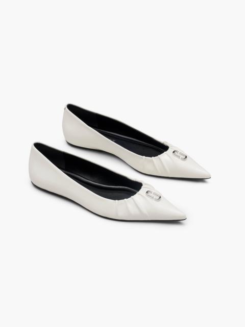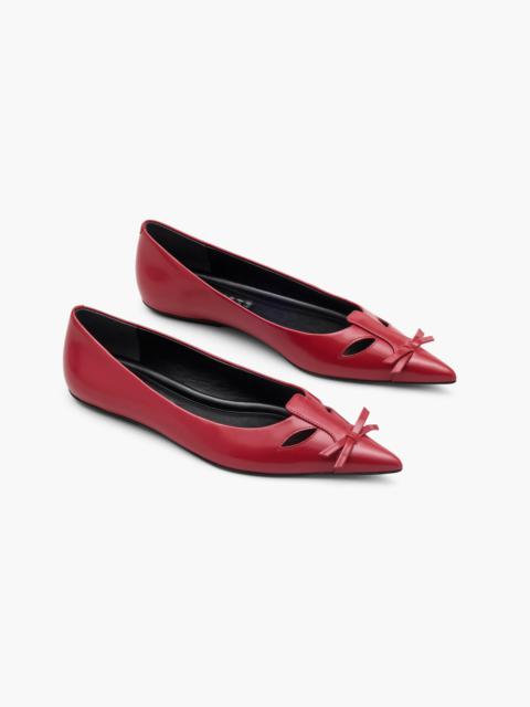 A pointed-toe ballet flat with a playfully charming Marc Jacobs twist. This cat-inspired silhouette features a cushioned insole for enhanced comfort and elevated handcrafted detailing with hand-sewn whiskers and ornamental cat-eye cutouts. Crafted in luxurious Spazzolato leather and adorned with allover glam studs, this silhouette adds effortless texture and character to any outfit. 2F4FFL001F10 FEATURES Spazzolato leather upper with round studs PU footbed Leather sole Slip-on