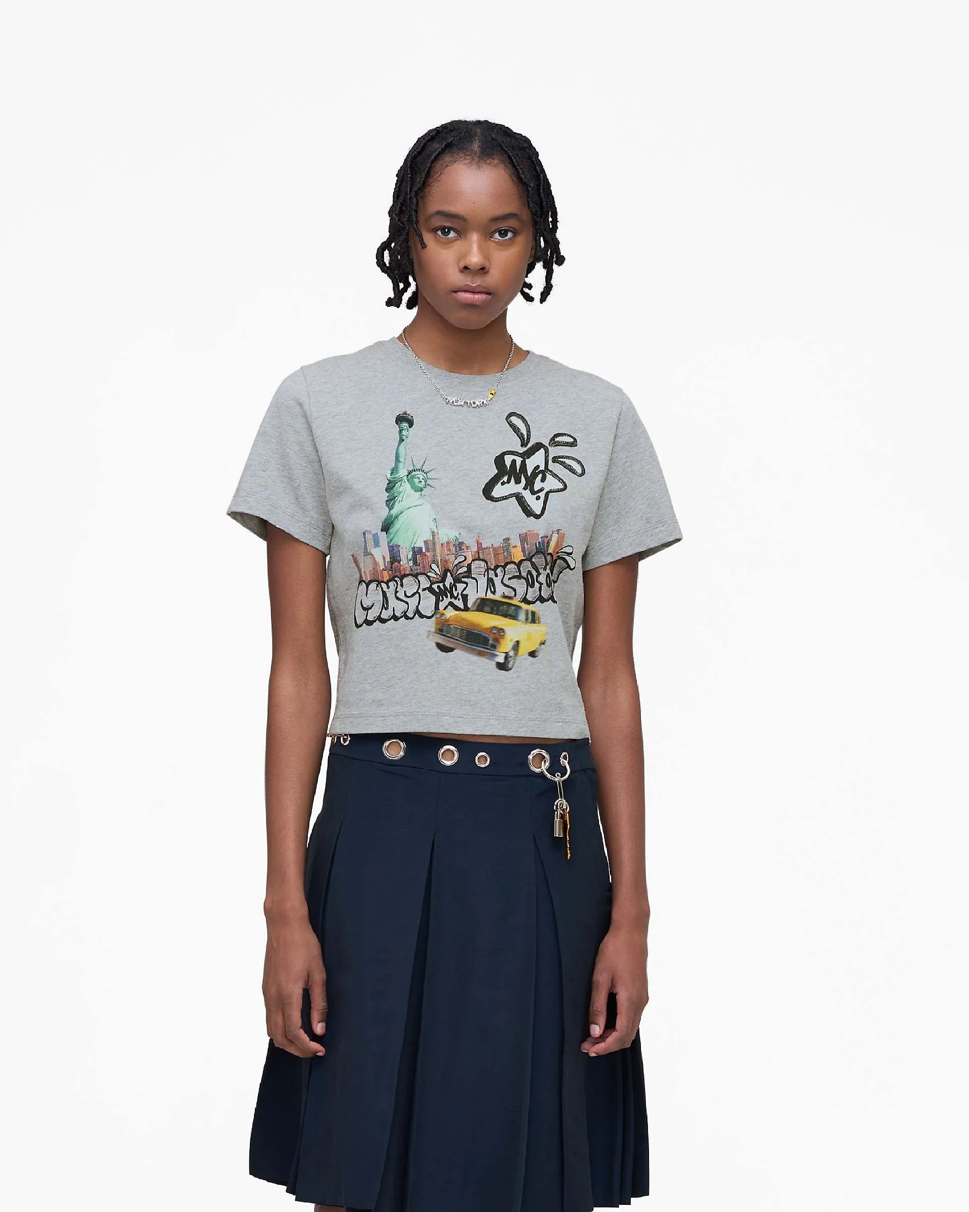 Description Part of the limited-edition City Capsule. Embrace the concrete jungle in this flowy, slightly oversized cotton tee, featuring Marc Jacobs’ custom New York City artwork. From careening taxi cabs and subway-inspired graffiti to iconic skyline views, this gray canvas captures the raw, relentless energy of the city that never sleeps. Crafted from soft, breathable cotton for all-day comfort, it’s finished with an artisanal woven label at the back. 2R5RTP022C16 Features 100% Cotton Artwork by Shaun Crawford City Capsule Woven Label Sizing Fits true to size. Slightly flowy fit.