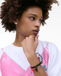 Description The Collector Charm Bracelet fuses bold design with whimsical charm. Eclectic accents on a distinctive chain capture Marc Jacobs' signature grunge-glam edge. The lobster clasp ensures a customizable fit, perfect for effortless standout styling. 2P5JBR001J47 Features Plated Brass Enamel with glass stones 100% nickel free Lobster clasp closure Shipped in our signature yellow gift box with custom monogram dust bag Dimensions Base Length: 7"" (18cm) Extender: 3cm Letters: 12-28mm