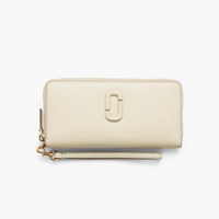 A smooth leather continental wallet with signature covered J Marc seal. This storage-forward wallet features a top zip closure and removable leather wristlet strap for effortless styling. It includes twelve interior card slots, one interior bill sleeve, one zip-closure coin pocket and two external slip pockets. Pair with our covered J Marc bags for a perfectly complimentary set. 2P4SMP013S02 FEATURES Smooth leather Top zip closure 12 interior card slots, 1 interior bill compartment, 1 zip coin pocket, 2 external slip pocket Removable wristlet strap Twill lining Dust bag included DIMENSIONS 8in L x 1in D x 4in H 20cm L x 2cm D x 10cm H