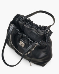 Description Effortless by design, this tote draws inspiration from the ‘Marc by Marc’ archives, reviving signature aesthetic cues through its heritage-inspired hardware and distinctive scrunch detailing - all reimagined in butter-soft Nappa leather. Spacious enough for a 13-inch laptop yet featherlight in feel, it effortlessly adapts to your day - seamlessly shifting from work meetings to casual outings, and every impromptu event in between. Finished with a J Marc chain and archival key charm, it nods to its lineage and distinctly modern reinterpretation. 2F5HTT024H01 Features Smooth Leather Magnetic Closure Top Handle 2 Compartments, Internal Zip Pocket, Internal Slip Pocket Faille Lining Dust Bag Included Dimensions 17in L x 6in D x 11in H 43cm L x 15cm D x 28cm H Handle Drop 11in (28cm)
