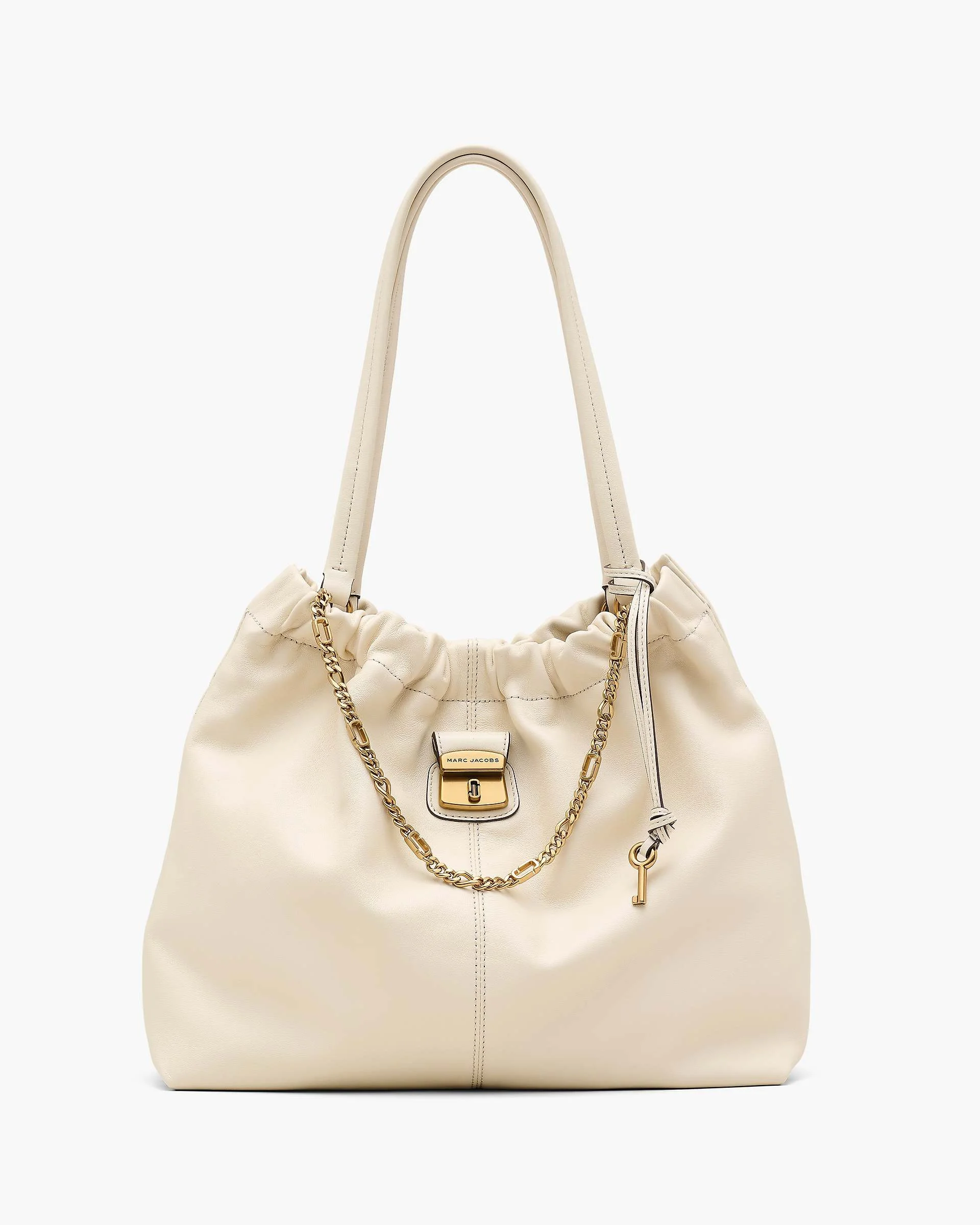 Description Effortless by design, this tote draws inspiration from the ‘Marc by Marc’ archives, reviving signature aesthetic cues through its heritage-inspired hardware and distinctive scrunch detailing - all reimagined in butter-soft Nappa leather. Spacious enough for a 13-inch laptop yet featherlight in feel, it effortlessly adapts to your day - seamlessly shifting from work meetings to casual outings, and every impromptu event in between. Finished with a J Marc chain and archival key charm, it nods to its lineage and distinctly modern reinterpretation. 2F5HTT024H01 Features Smooth Leather Magnetic Closure Top Handle 2 Compartments, Internal Zip Pocket, Internal Slip Pocket Faille Lining Dust Bag Included Dimensions 17in L x 6in D x 11in H 43cm L x 15cm D x 28cm H Handle Drop 11in (28cm)