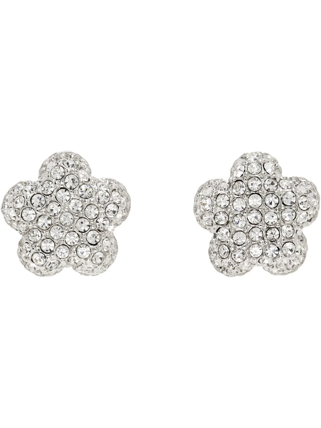 Pair of stud earrings in silver-tone brass. · Graphic at face with pave-set glass crystals · Post-stud fastening · H0.5" x W0.5" Part of THE™ collection. Supplier color: Silver/Crystal Brass, glass. Made in Thailand 261190F022004