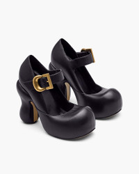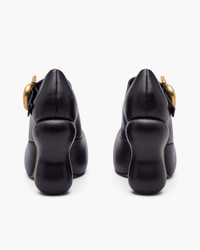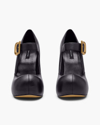 Description First debuted on the Fall ’24 Runway and luxuriously crafted in smooth leather, this doll-inspired silhouette embraces exaggerated proportions and cartoon-influenced amplified detailing. With theatrically rounded accents and a single strap featuring a prominent gold statement buckle closure, embrace an instantly-iconic Marc Jacobs design with this playfully sophisticated show-stopper. 2S5FPM001F06 Features Leather upper PU footbed Leather sole Buckle ankle strap Sizing 5" (125mm) heel 4" (105mm) pitch Exaggerated rounded toe, regular fit