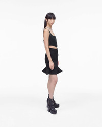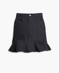 Denim dressing reimagined. Crafted from black wash twill, this mini skirt is designed with a sweeping fluted hem and an "M" stitch at the back pockets. Style with the matching Fluted Denim Jacket to complete the look. 2F3RSK002D03 FEATURES 100% cotton "M" stitching at back pockets Marc Jacobs tack buttons Tonal leather barcode patch Zipper fly Seam details creating flare hem