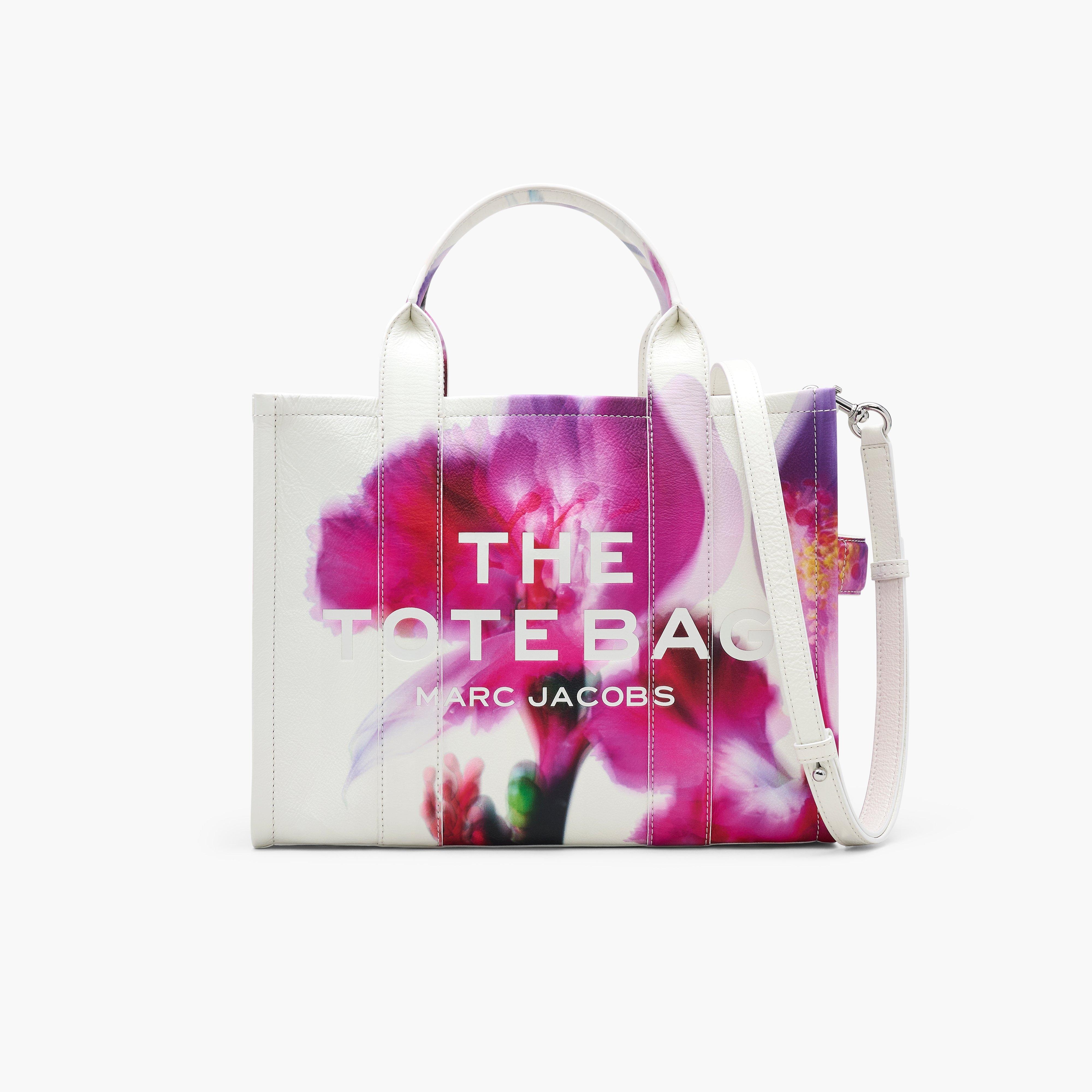 An iconic Marc Jacobs silhouette, this zip-top medium tote in lightweight, textured crinkle-leather features our seasonal abstract floral print, Future Floral, and signature carryall design. Carry by leather top handle, or attach adjustable leather strap to style as a shoulder bag or crossbody. 2P4HTT052H02 FEATURES Crinkle leather Top zip closure Top handle, removable and adjustable leather strap 1 interior zip pocket, 2 slip pockets, 1 card slot Twill lining Dust bag included DIMENSIONS 13in L x 6in D x 11in H 34cm L x 15cm D x 27cm H Strap 45in L x 1in D (115cm L x 2cm D) Strap Drop 22in56cm Handle Drop 5in (12cm)