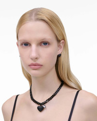 Description This necklace blends bold sophistication with playful charm, featuring a pave heart on a chunky chain, paired with a delicate companion heart. The lobster clasp ensures a perfect fit, ideal for both daytime and evening looks. 2P5JNC001J08 Features Plated Brass Glass stones 100% nickel free Lobster clasp closure Shipped in our signature yellow gift box with custom monogram dust bag Dimensions Base Length: 16" (41cm) Extender: 1.9"" (5cm) Pendant: 24mm x 19mm