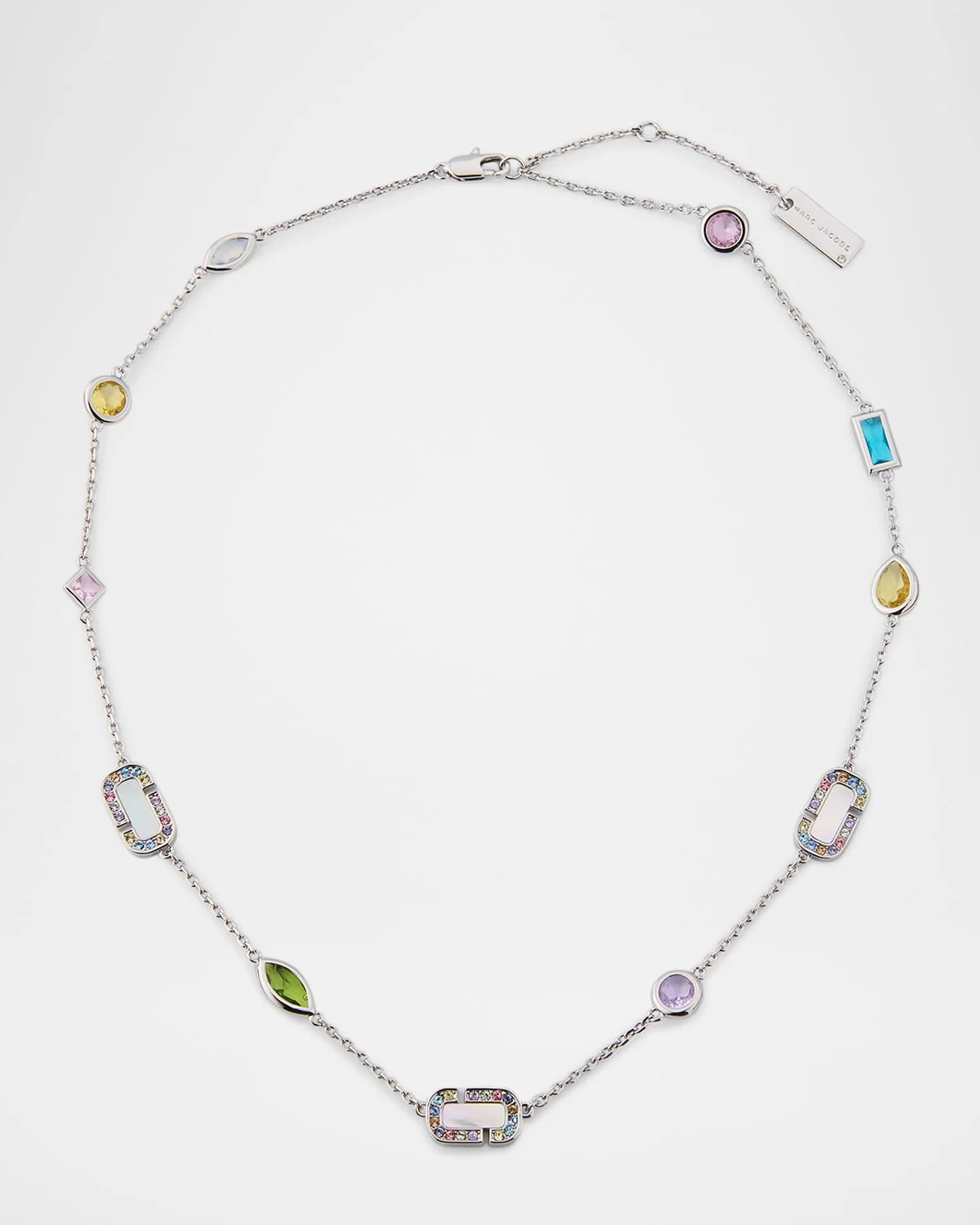 This necklace by Marc Jacobs is crafted with a dynamic design featuring mixedcut, multihued stones. Approx. 16" length; 2" extender; 810mm gems Shiny brass Glass stones Motherofpearl shell Adjustable length Lobster clasp Imported