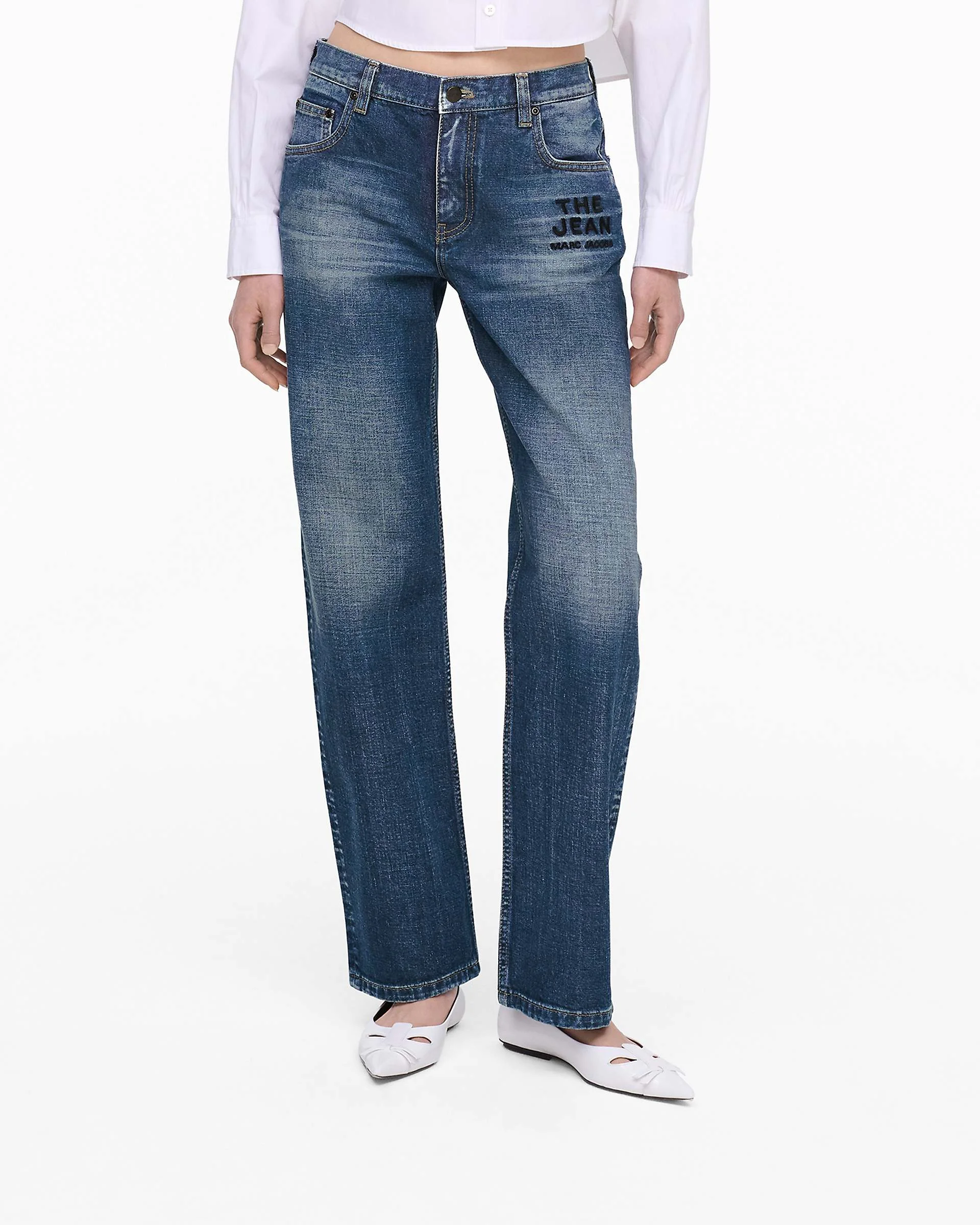 Description Fabricated in mid-washed denim, these retro-inspired mid-rise jeans have a relaxed, straight-legged silhouette. Featuring a zipper-button closure, our iconic back-pocket "M" stitching and signature branded detailing, these essential jeans are perfect for high-style everyday wear. Part of THE collection. 2S5RBT001D10 Features 100% Cotton "M" stitching at back pocket, custom logo tack button and rivets, embroidered logo at front left thigh, supply patch label at back waistband Rivets Zipper fly Mid rise, relaxed, straight cut leg Sizing Mid Rise. Fits true to size Taken from size 26 waist 29.9"hip 38.2"inseam 31.0"