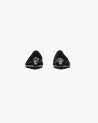 Description A pointed-toe ballet flat with a playfully charming Marc Jacobs twist. This cat-inspired silhouette features a cushioned insole for enhanced comfort and elevated handcrafted detailing with hand-sewn whiskers and ornamental cat-eye cutouts. Crafted in luxurious Spazzolato leather, this silhouette adds effortless texture and character to any outfit. 2F4FFL001F11 Features Spazzolato leather upper PU footbed Leather sole Slip-on Sizing 5mm heel Pointed toe, regular fit