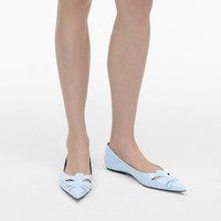 A pointed-toe ballet flat with a playfully charming Marc Jacobs twist. This cat-inspired silhouette features a cushioned insole for enhanced comfort and elevated handcrafted detailing with hand-sewn whiskers and ornamental cat-eye cutouts. Crafted in luxurious Spazzolato leather, this silhouette adds effortless texture and character to any outfit. 2F4FFL001F11 FEATURES Spazzolato leather upper PU footbed Leather sole Slip-on