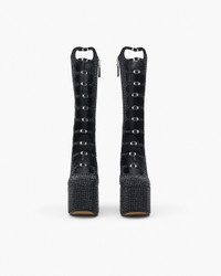A chunky platform statement boot in rhinestone-embellished soft suede. First introduced on the Marc Jacobs runway, this archival style was designed to play with proportion, and has since become a beloved Marc Jacobs signature icon. The Kiki boot features a side-zip and adjustable multi-buckle closure for high-style detailing. 2P4FBO001F19 FEATURES Suede upper with hotfix crystals Leather footbed and sole Zipper closure