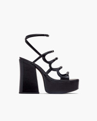 Description Inspired by the iconic characteristics and proportions of our signature runway-to-reality Kiki Boot, this chunky heeled sandal features sultry strappy detailing and signature Kiki metal multi-buckle closures. Designed and refined for wearability, slide on and off easily by unbuckling only the ankle strap. Luxuriously crafted in premium leather, redefine ultrachic styling with this showstopping statement shoe. 2S5FPM001F14 Features Leather upper Leather footbed Leather sole Buckle ankle strap Sizing 5" (125mm) heel 3" (80mm) pitch Round toe, regular fit