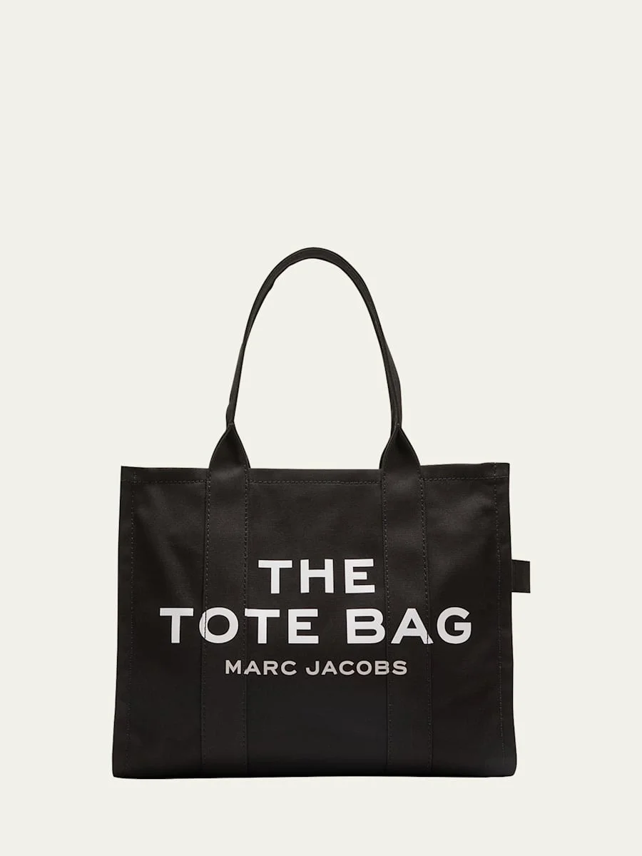 The Marc Jacobs Traveler tote bag in cotton canvas with screen printed logo. The Color Collection is an everyday capsule designed by Marc to celebrate comfort, creativity and selfexpression. Can be held by the top handles. Rolled top handles, 9.5" drop. Zip top closure. Interior, patch pockets. Luggage strap at side. Unlined. Weight: 30oz / 0.85kg. 13.4"H x 16.5"W x 6.3"D. Imported.